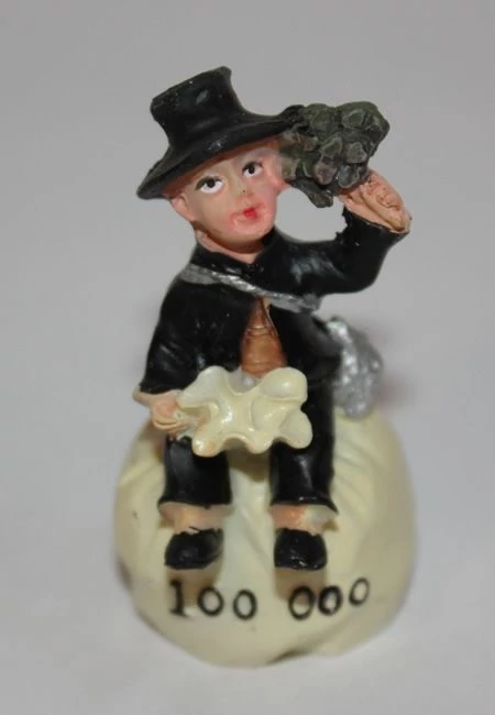 KERÁMIA kéményseprő lóherével, pénzeszsákkal 5cm