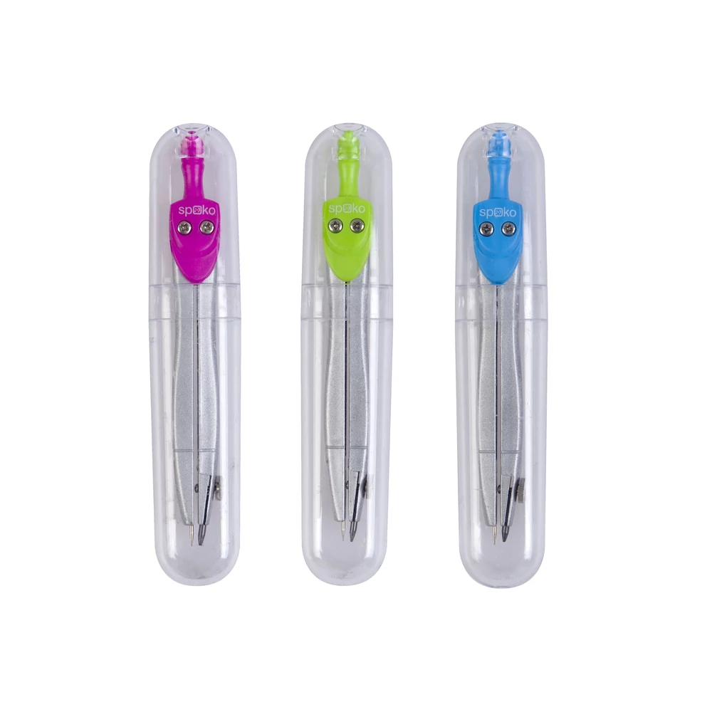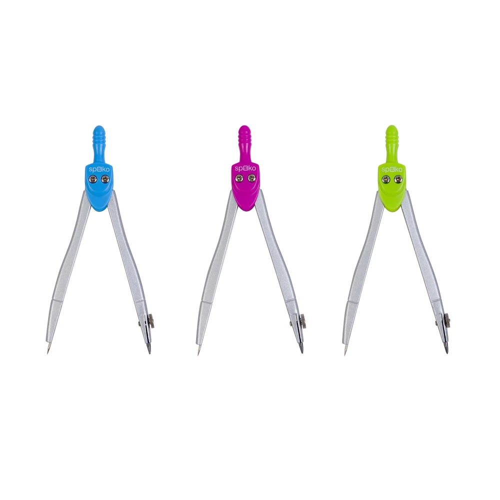 - Körző S 0511 szóló, műanyag tubusban (világos kék, pink, neon zöld) vegyes színű műanyag fogószárakkal. - Kényelmes fogórész, fogasléces szárkapcsolódás, átmenő anyáscsavar szárrögzítés, állítható grafitbél.