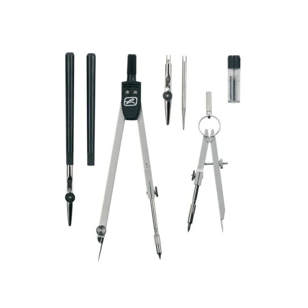 Körzőkészlet, 7 részes, fekete, pótheggyel, hegyvédővel.