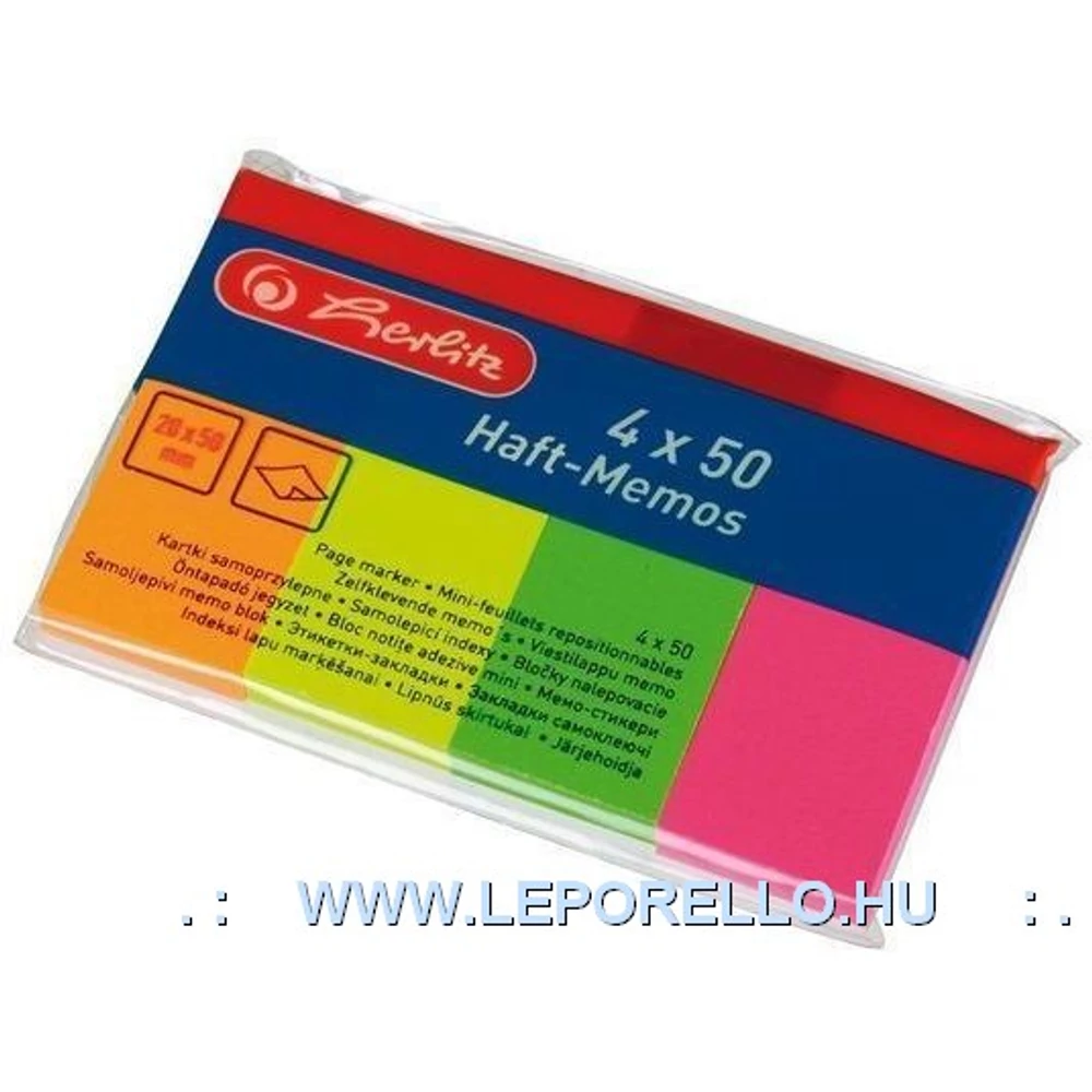 - Öntapadós jelölőcsík 50x20mm-es méretben, 50 lappal, 4 db /csomag, neon színek