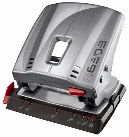 - fémtest, matt bevonat kidolgozottság és letisztult dizájn kombinációja távtartó bemélyedés a konfettitartó tálcán a gyűrűskönyvek és emelőkaros iratrendezők fémszerkezetének odaillesztéséhez, a dokumentumok pontos helyen történő lyukasztásához lyukátmérő: 5,5 mm 10 év garancia
