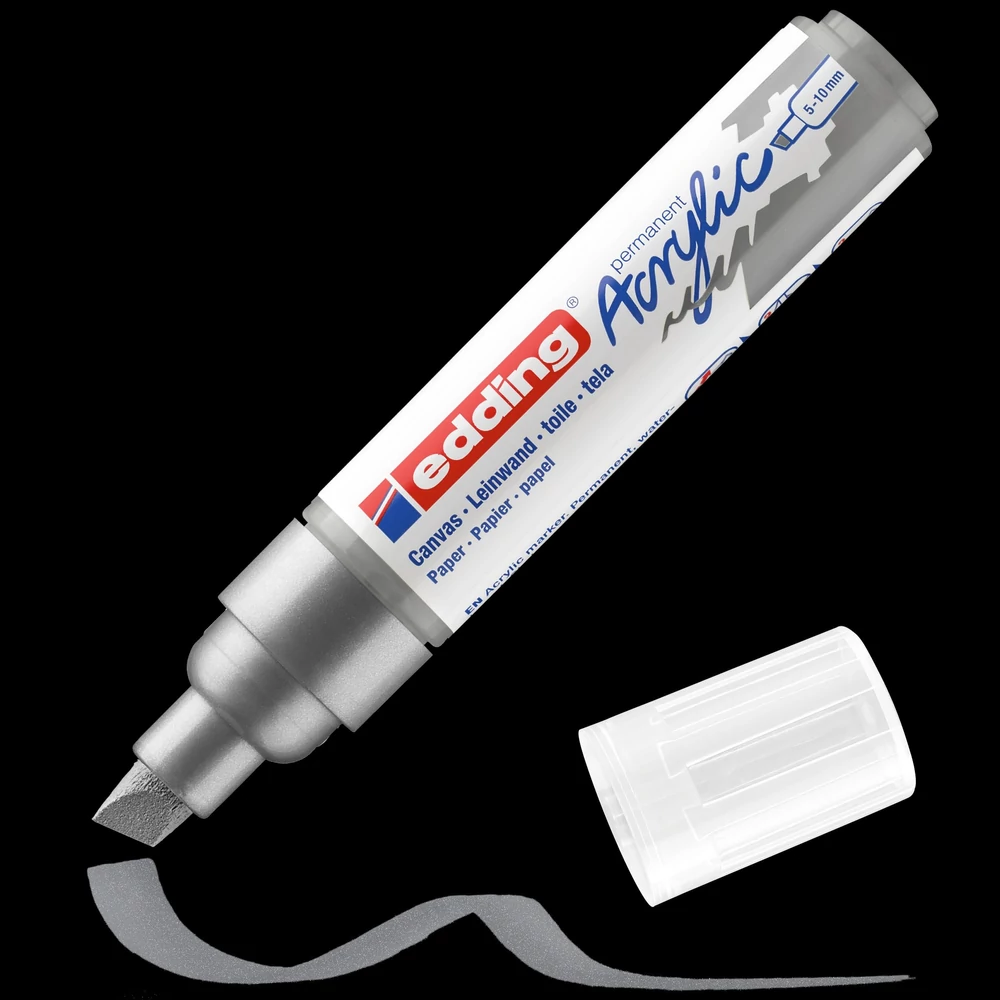 Színek: 7580244016-traffic white(922), 7580244008-traffic yellow(905), 7580244012-pastel yellow(915), 7580244009-sunny yellow(906), 7580244000-neon yellow(065), 7580244001-neon orange(066), 7580244024-classy mauve(935), 7580244005-traffic red(902), 7580244002-neon pink(069), 7580244011-berry(910), 7580244027-telemagenta(909), 7580244022-elegant midnight(933), 7580244006-gentian blue(903), 7580244023-opulent turquoise(934), 7580244013-pastel blue(916), 7580244021-mellow mint(928), 7580244007-moss green(904), 7580244014-pastel green(917), 7580244020-yellow green(927), 7580244003-warm beige, 7580244015-hazel(919), 7580244010-chocolate brown(907), 7580244019-anthracite(926), 7580244018-rich gold(924), 7580244017-silver(923), 7580244004-black(901)- Akril marker világos vagy sötét felületekre történő festéshez, ideális olyan anyagokhoz, mint a vászon vagy a festőpapír. - A vágott írócsúcs vonalvastagsága 5-10 mm. - A kiváló minőségű, pigmentált, vízbázisú akrilfesték száradás után rendkí