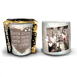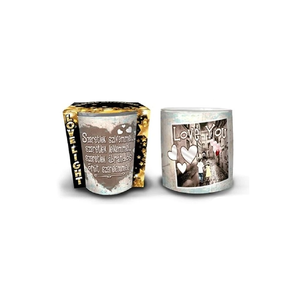 MÉCSESTARTÓ pohár szerelmes idézettel, teamécsessel 7*8,5cm