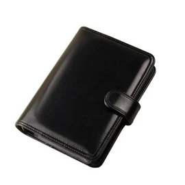 - Műbőr,  elöl bankkártya- és névjegytartóval, hátul jegyzet és tolltartóval.
