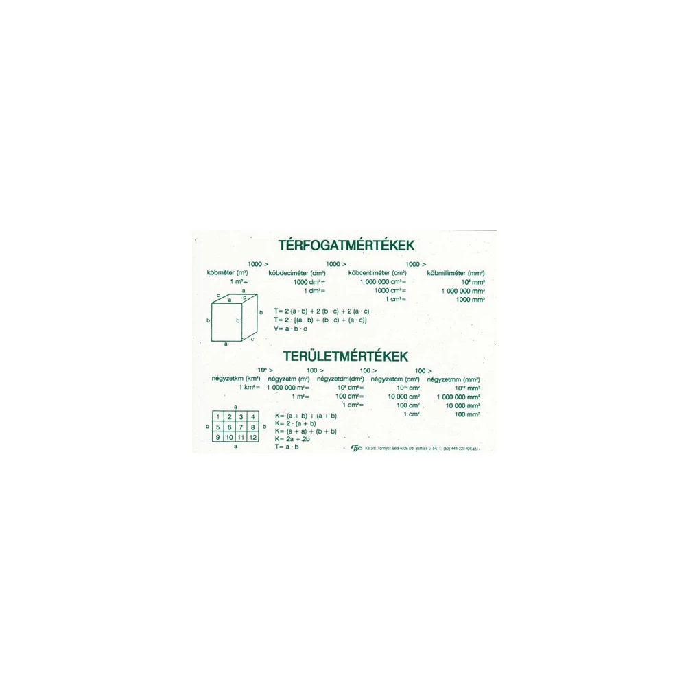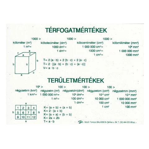 - a mértékegységtáblázatok nagyon hasznosak, beleférnek a füzet elejébe , müanyag, strapa bírólapok, melyeken rajta van a terület és térfogat számitás ,mértékegységek és váltószámok , hossz-súly és űrmérték.