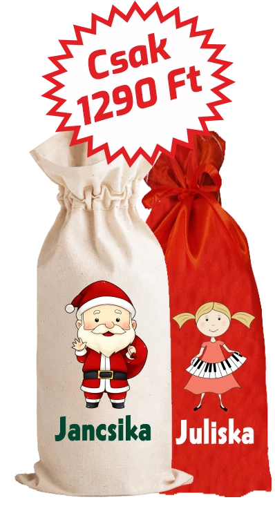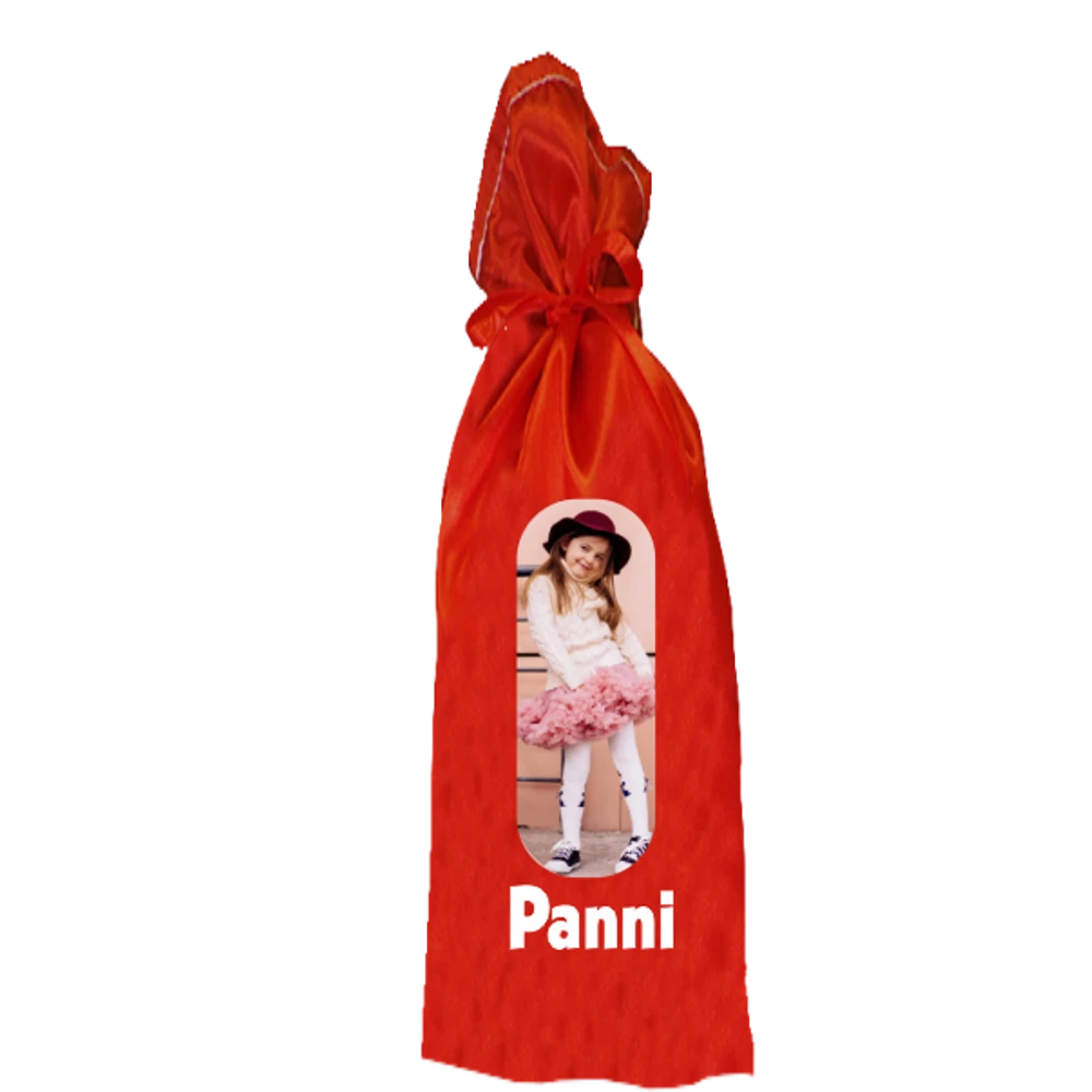 Piros szatén vagy natúr pamut tasak 18x28cm méretben. Saját névvel és képpel rendelhető.