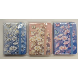 A7-es méretű, pillangós, vonalas, élnyomott napló, chamois belívvel, gumis zródással.