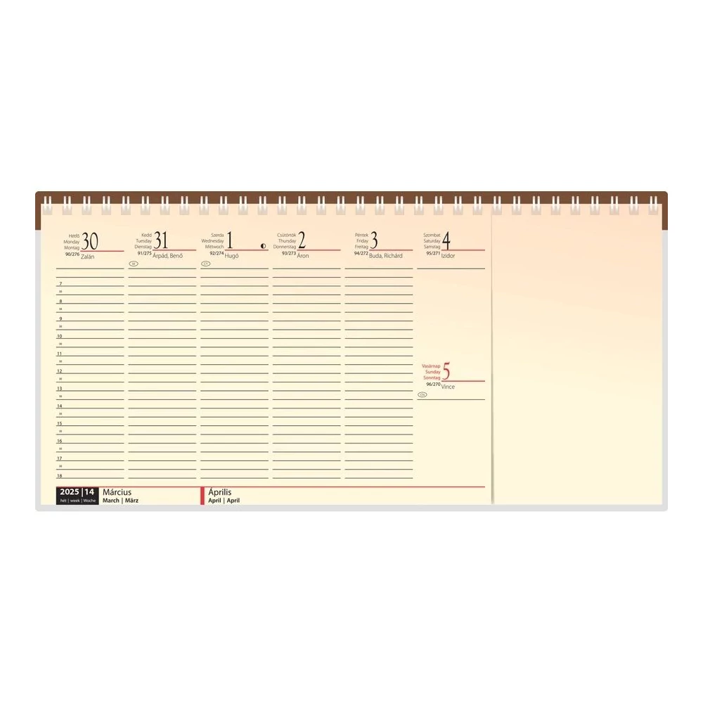 NAPTÁR asztali 2025 RealSys.7942 félórás, fekvő, blokktömbös, chamois lap,