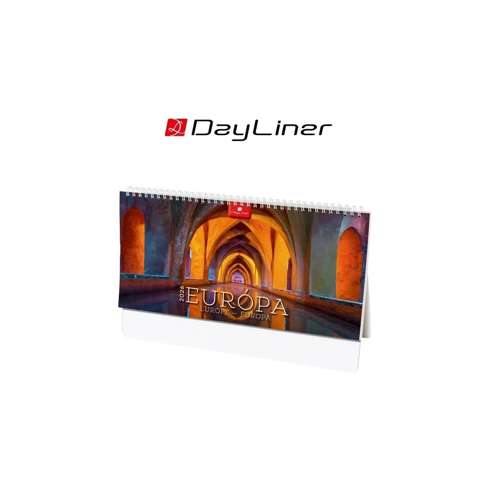 NAPTÁR asztali KÉPES 2026 Europa álló papírtáblás Dayliner 32*15cm