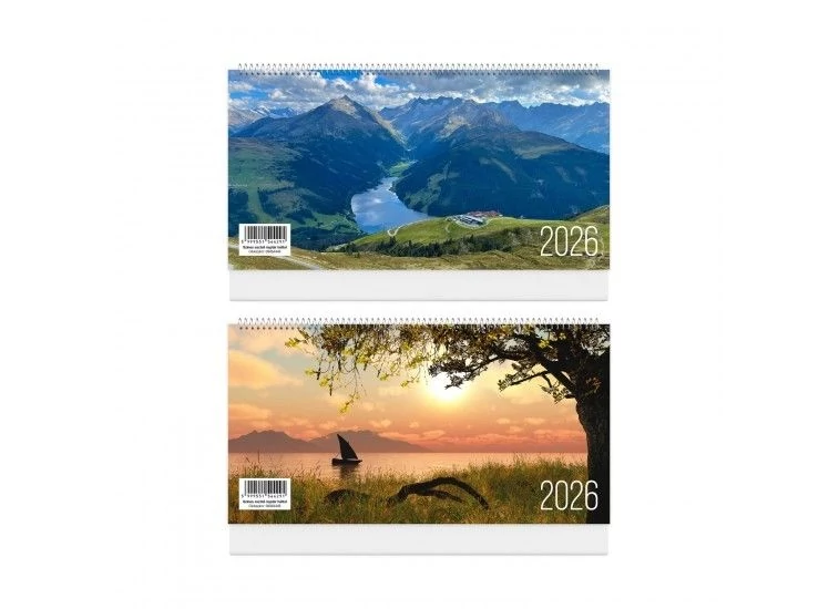 2026. évi színes TA24-es herlitz Mix asztali naptár háttal, 315x155 mm, két oldalon 4 színnel nyomott, naptárháttal összeszerelve, 115 gramm műnyomó belív, 200 gramm műnyomó fedlap, erős karton naptárháttal, belövőszállal, fehér spiráldróttal.Csillagászati adatok a belíven (napkelte, napnyugta, holdkelte és holdnyugta, csillagövi jegyek). Minta a készlet erejéig rendelhető.