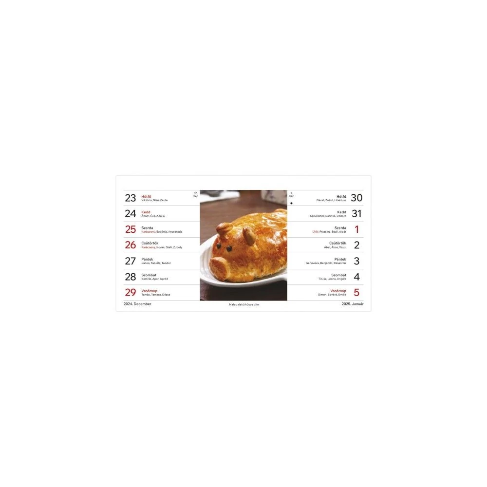 - 30 lapos, papírtáblás, fehér tömbös, álló asztali naptár.