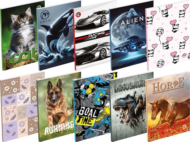 - karton borító + fényes fólia. 70 g-os hófehér belív.40 lapos.10 féle minta vegyesen.