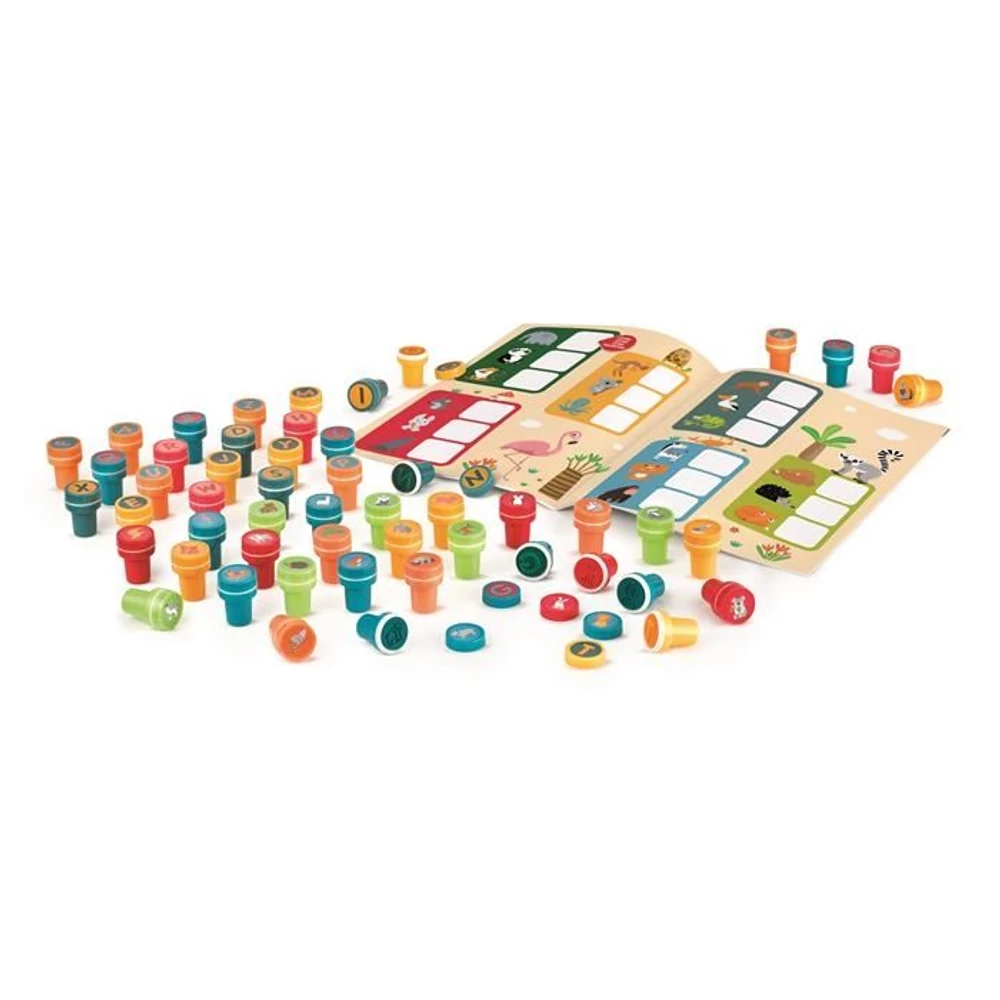 Nyomdázó készlet: "Stamps", betűk és állatok