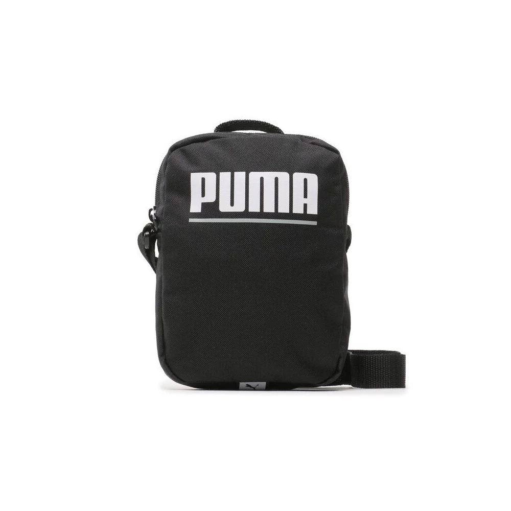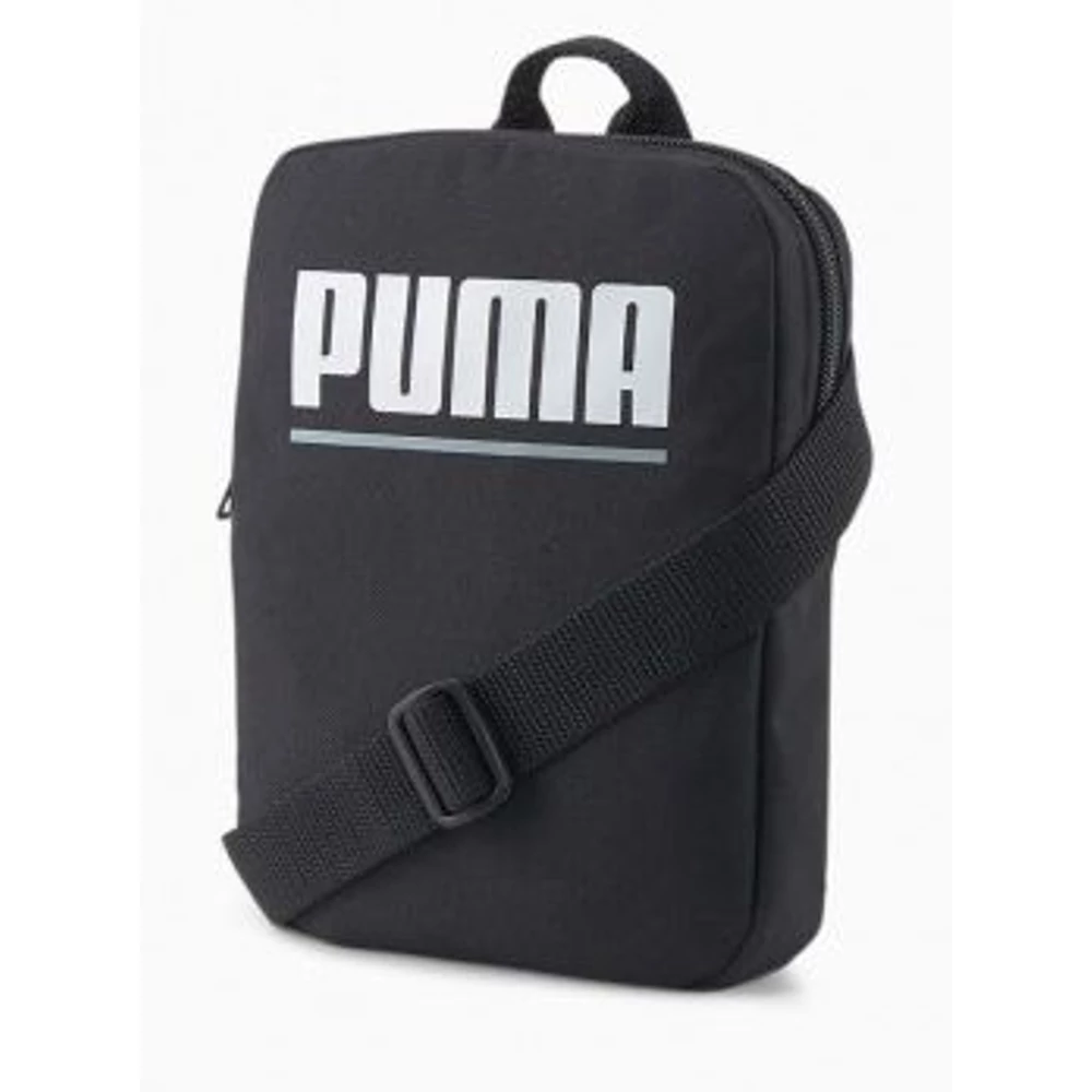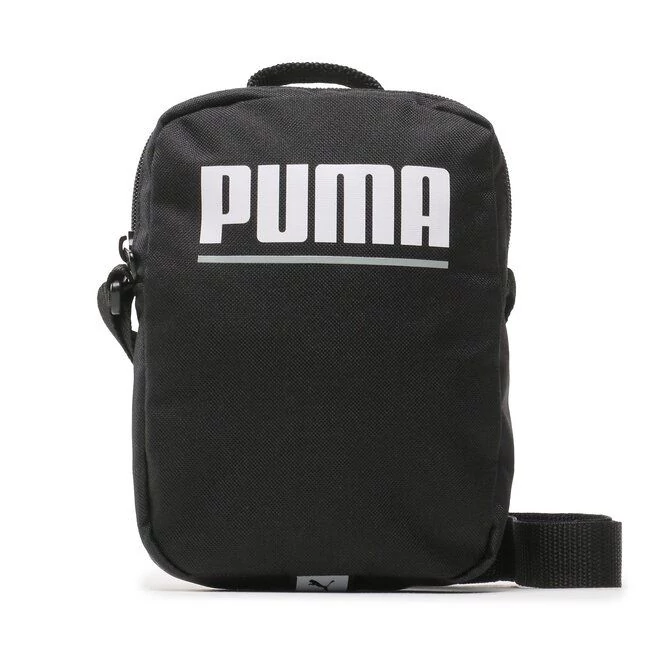 Puma márkájú, sportos, kisebb méretű, fekete színű, álló fazonú kézi és válltáska. Elejét nagy betűs, aláhúzott, fehér Puma felirattal szitázták. Fő része zippel nyílik, belterében kis zippes zsebbel bővítették, a legszükségesebb személyes holmik férnek el benne. Tetején lévő könnyed gurtnis fogójával kézben, állítható vállpántjának használatával vállon és keresztben is kényelmesen hordható.
