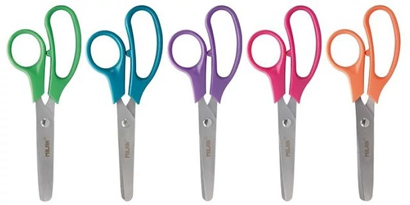 Iskolai olló. Lekerekített vágóhegy. Műanyag színes fogórész. 55 mm-es pengehossz.