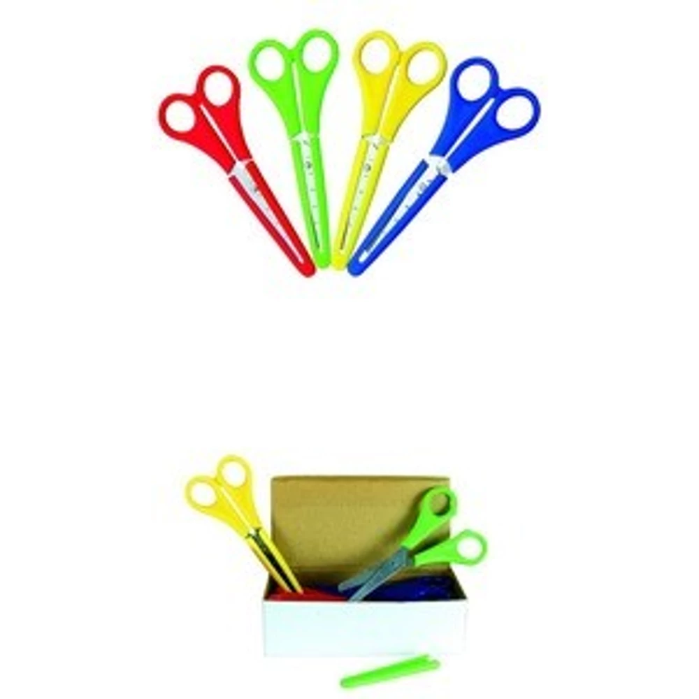 - Iskolai olló. Lekerekített vágóhegy. Műanyag fogórész. Vonalzós penge, 5 cm-es beosztással. Műanyag levehető penge. Vegyes színek.