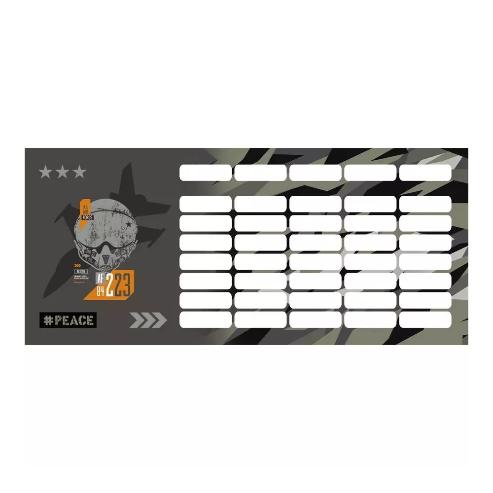 Kisméretű kétoldalas órarend, mely kényelmesen a tolltartóban is elfér.
