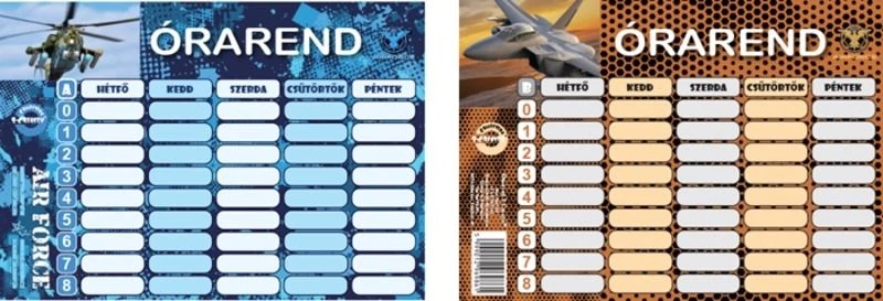 - 11,7x16,5 cm-es órarend. - Kétoldalas, - A-B hét egyaránt beleírható. 0-8 órás beosztású