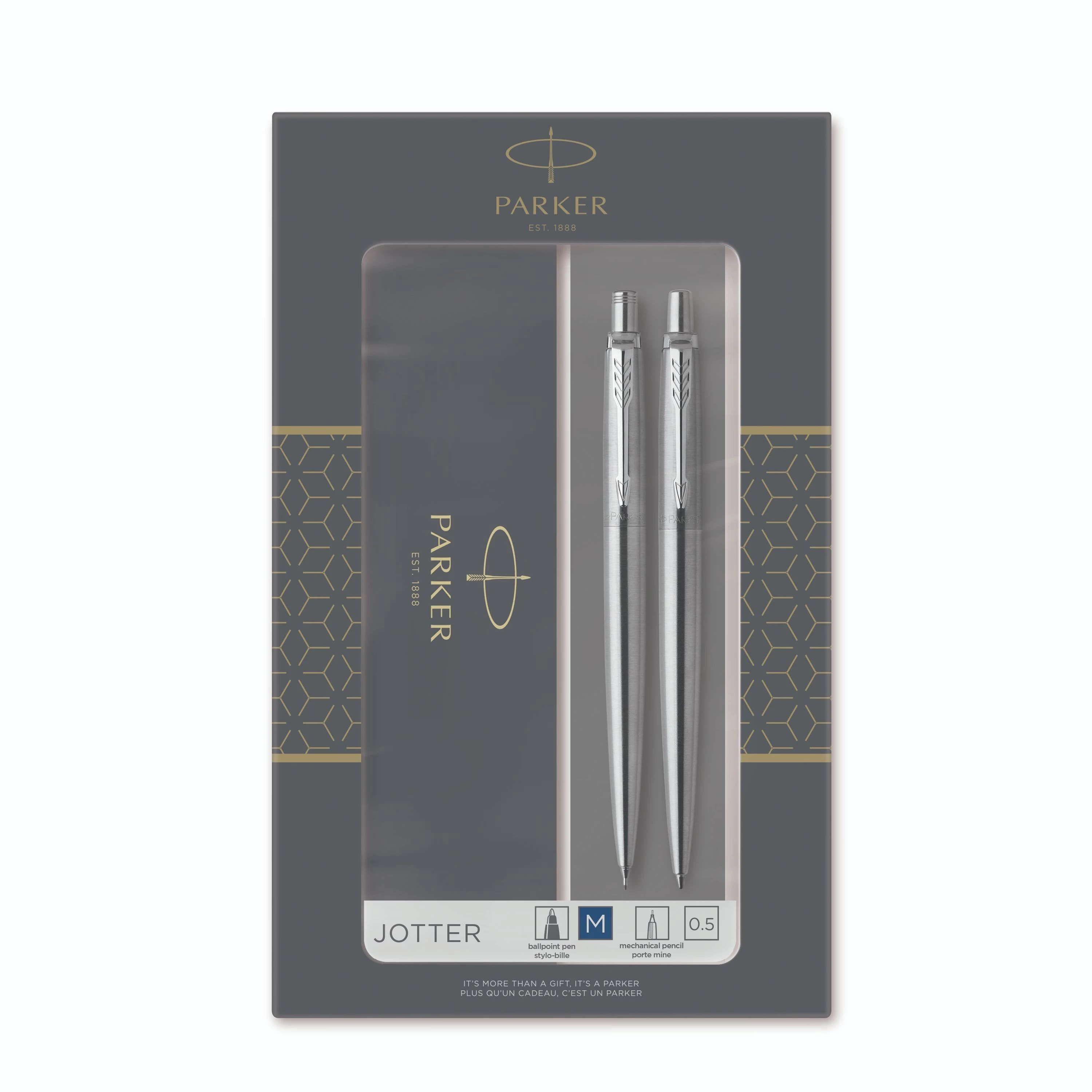 7030291001 -JOTTER - fém golyóstoll és fém nyomósiron ST.ST CT. parker díszdobozban - Az igazi klasszikus PARKER, amelyet megbízhatósága és egyszerű vonalai tettek világszerte ismertté. A JOTTER-t golyóstollként hozták forgalomba 1954-ben. A mechanikus ceruza mellett újdonságként jelent meg a roller és a töltőtoll változat. Kiváló funkcionális íróeszköz minden korcsoport számára. Gravírozható. Remek ajándék! A JOTTER az igazi klasszikus PARKER, amelyet minősége, tartóssága és nagyszerű ár/érték aránya tett világszerte ismertté. A Moholy-Nagy László tervezte modell praktikus, egyszerű vonalvezetésével töretlenül népszerű. Az elmúlt 50 évben több mint 750 millió JOTTER-t adtak el világszerte.