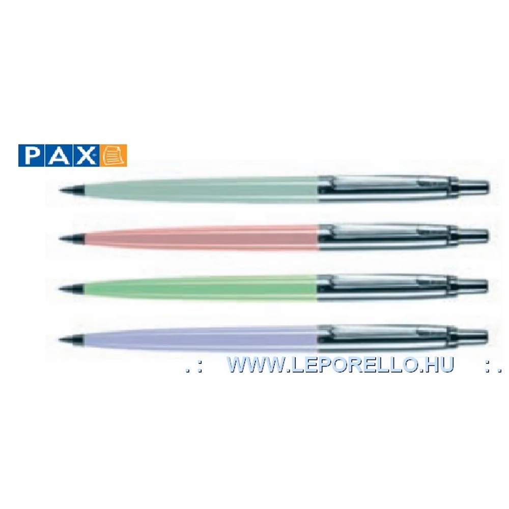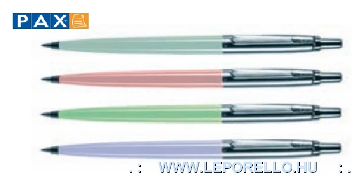 Original színek: PAX4030201-fehér-PX4030201, PAX4030202-fekete, PAX4030203-piros, PAX4030205-bordó, PAX4030206-s. zöld, PAX4030204-s. kék-PX4030204 Pasztell színek: PAX4030301-pasztell rózsaszín, PAX4030302-pasztell zöld, PAX4030303-pasztell kék, PAX4030304-pasztell lila, Matt színek: PAX4030401-citromsárga, PAX4030402-narancssárga, PAX4030403-élénkzöld, PAX4030404-középkék, PAX4030405-lila, PAX4030406-magenta, PAX4030504-matt fekete, - Tradicionális magyar termék, 1960 óta gyártott. Műanyag nyomtatható tolltest, 0,8 mm PAX tollbetéttel szerelve, íráshossza 10000 m. Gel betét: speciális pasztával töltött betét, mely a tökéletes írást szavatolja.