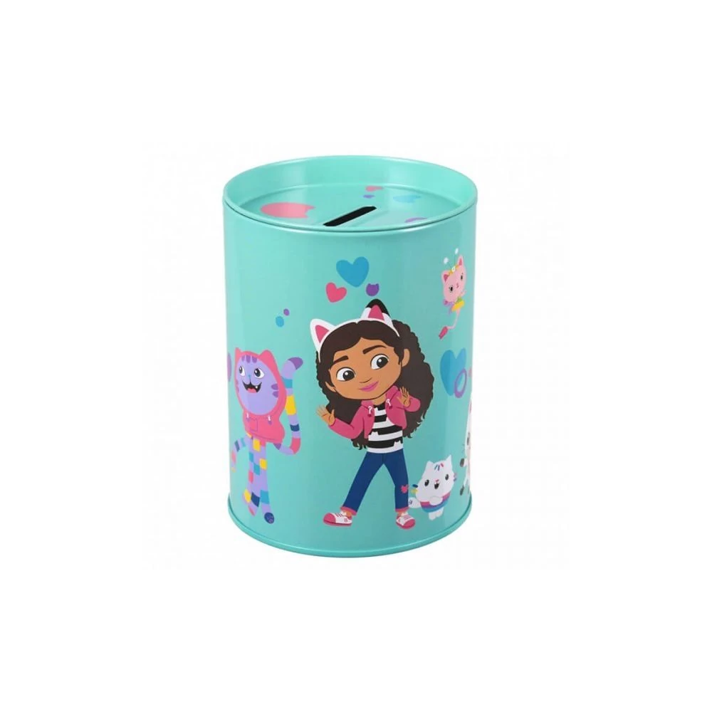 Gabi babaháza és barátai mintás persely, melyben a zsebpénz gyűjthető. A fémpersely teteje levehető.