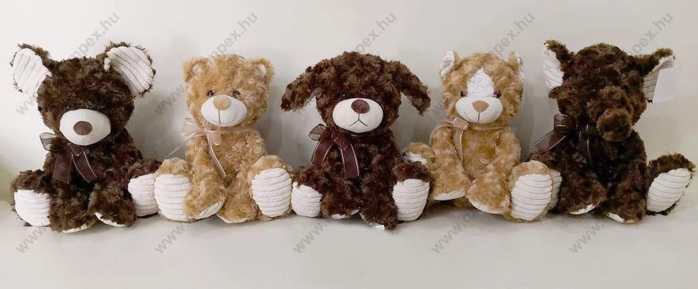 PLÜSS s.barna kutya ülő,szalaggal 25cm