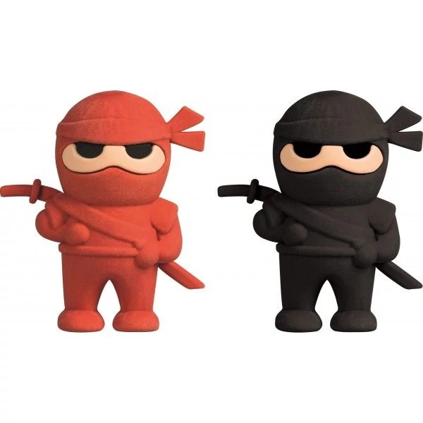 Piros és fekete színű ninja formájú radír. Mérete: 35mm x 45mm x 20mm.
