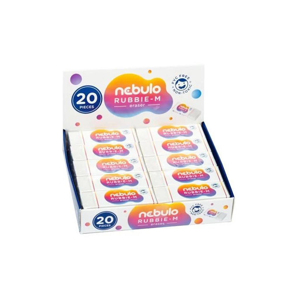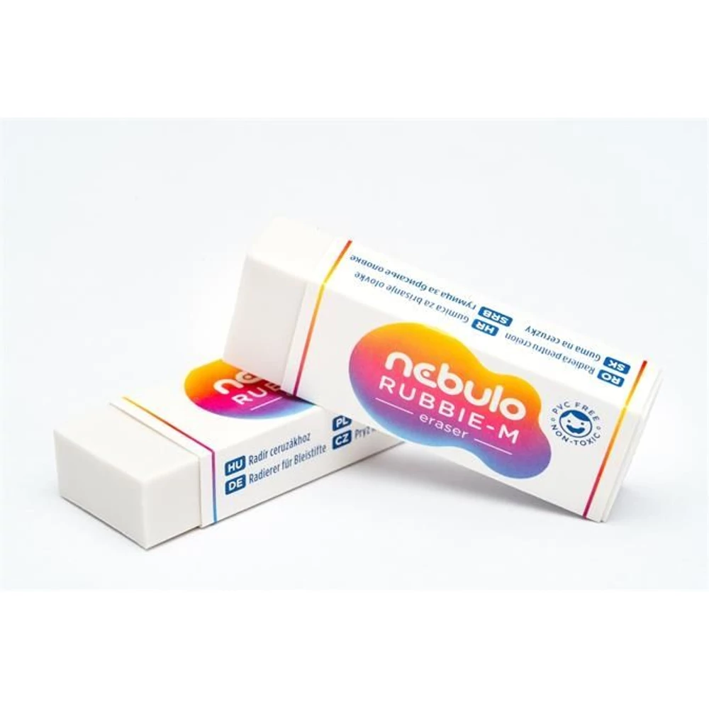 Forgács- és PVC mentes gumi radírok papír tokban. Ideálisak ceruzavonalak radírozásához. Nem tartalmaznak egészségre káros anyagot. Rubbie-M mérete: 59*21*11 mm
