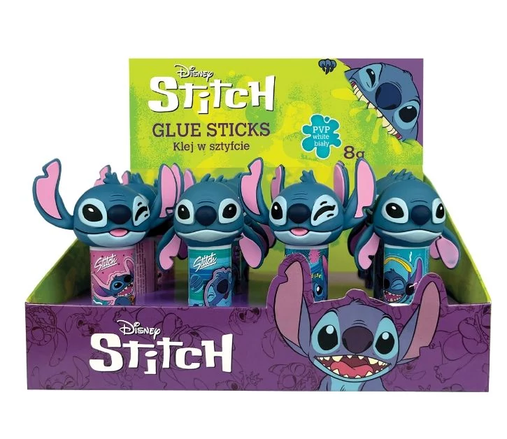 Kitekerhető ragasztóstift Stitch-es kupakkal. Praktikus méretének köszönhetően tolltartóban vagy iskolatáskában is elfér. Száradás után átlátszó.