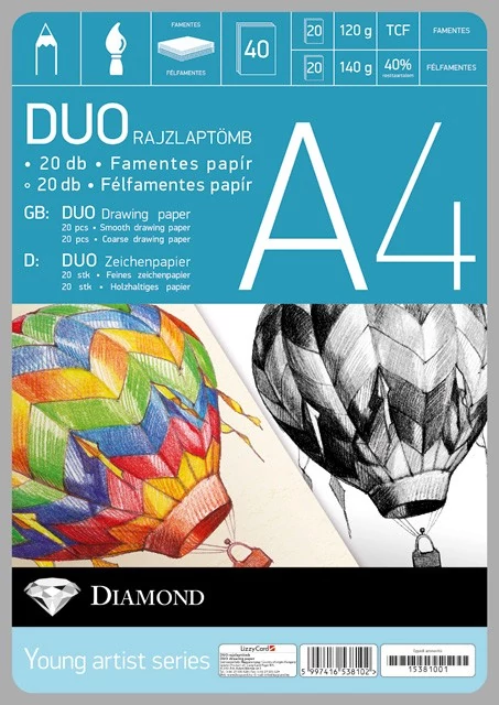 RAJZLAPTÖMB A4 DUO 20ív félfa-, +20 ív famentes lap/tömb Lizzy