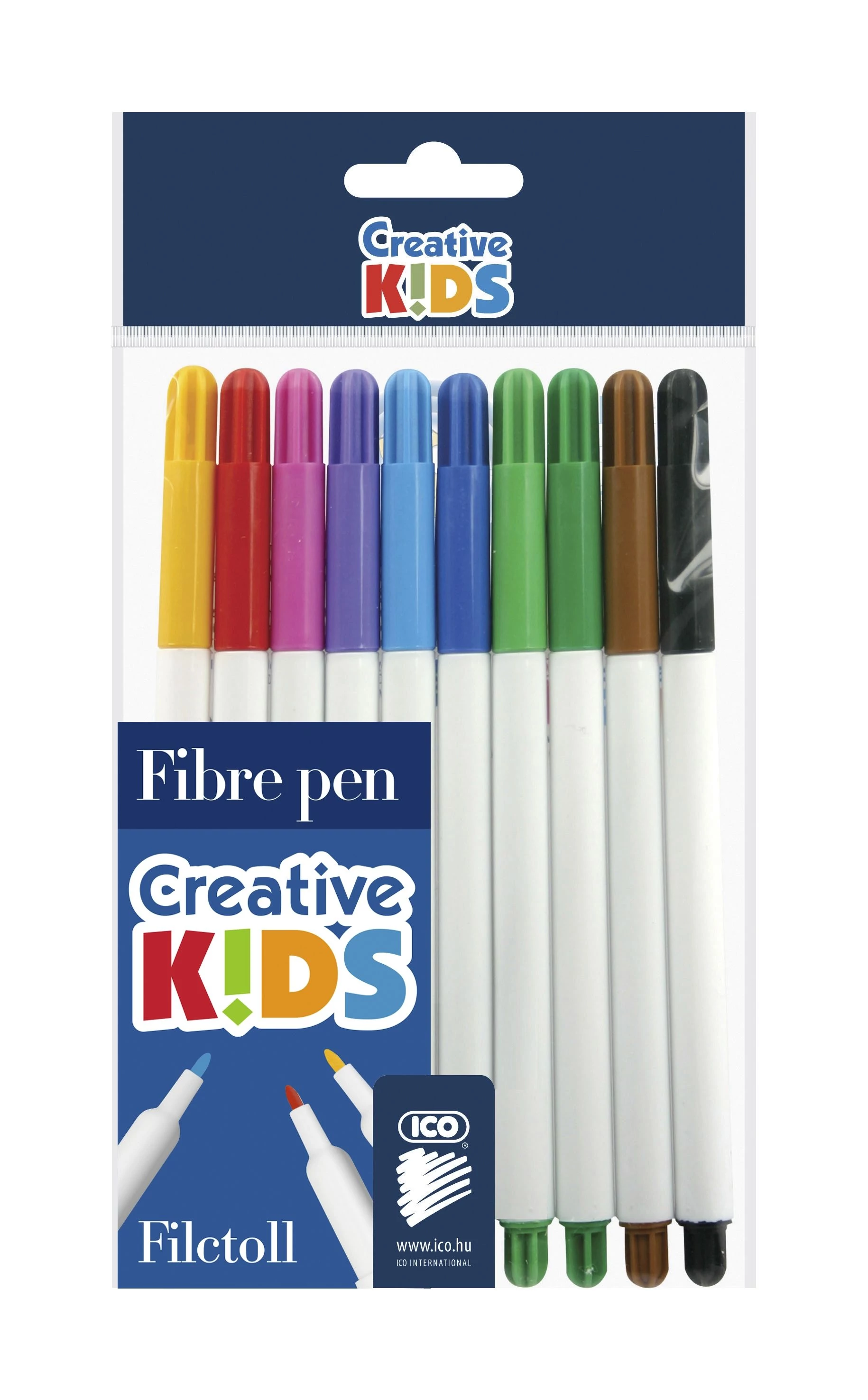 Vízbázisú festékkel töltött rostirón, átlevegőzős biztonsági kupakkal, rajzolásra, színezésre. 10 db-os készlet. Vonalvastagság: 1 mm.