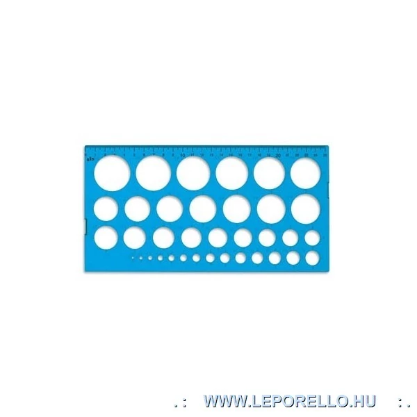 - Körsablon amely 25cm hosszú és 4 sorban találhatóak rajta a különféle átmérőjű körök.