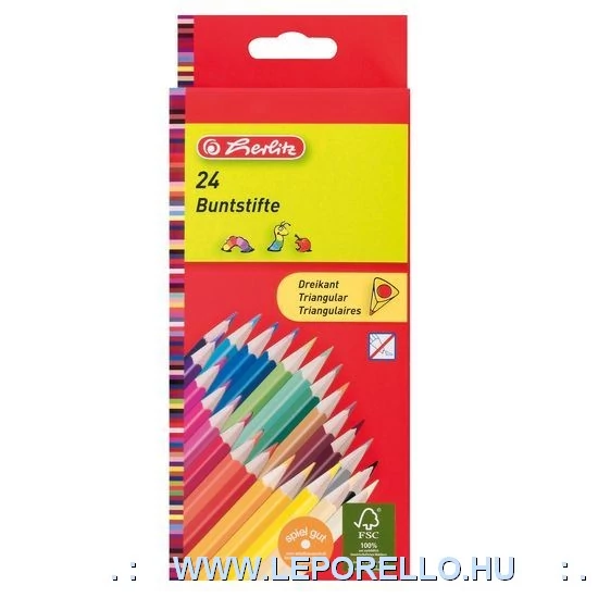 - Színesceruza/24 szín, Trio,, - háromszögletű, lakkozott hársfa FSC fából.