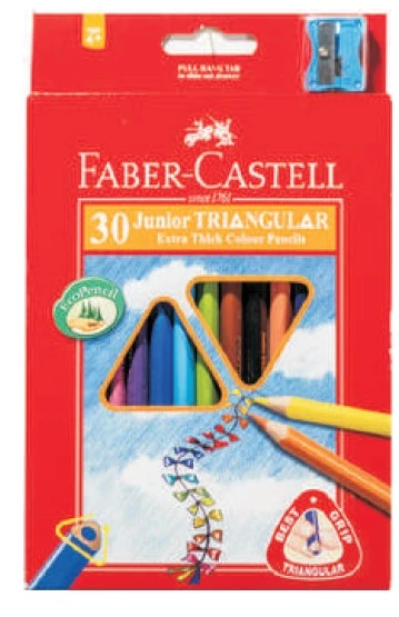 - 30db-os tringuláris színes ceruza készlet. - Kíváló, élénk színek, ajándék hegyezővel. - az ergonómikus háromszög forma optimális ujj felfekvést biztosít - SV ragasztás a belső törések ellen, könnyed hegyezés