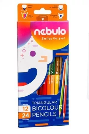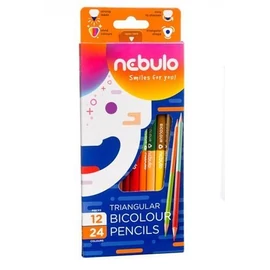 Kétvégű háromszög színes ceruza készlet, 12 db => 24 szín. Arany és ezüst, valamint 4 neon szín a készletben. Erős, jól hegyezhető hegy. Ceruzabél átmérője: 3 mm.