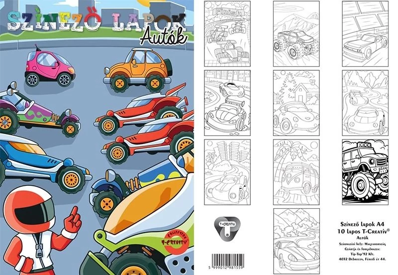 SZÍNEZŐ LAPOK A4 T-Creatív 10lap/cs. vegyes minta (Autók, M23002TFO)