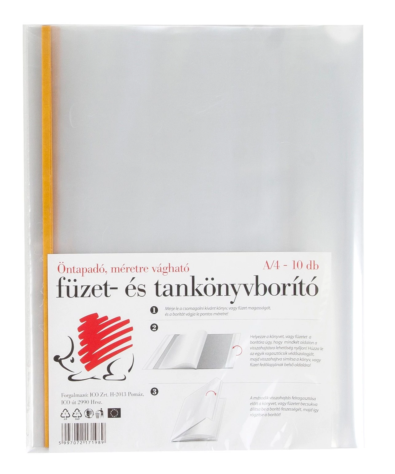 - Öntapadó csíkkal ellátott, méretre vágható, víztiszta tankönyvborító nagyalakú tankönyvekhez és füzetekhez.
