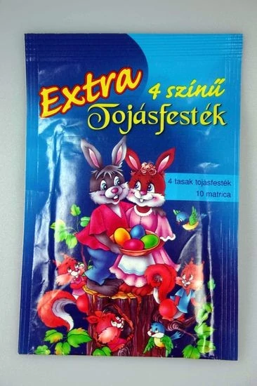 Húsvéti tojásfesték Extra készlet, tartalma: 4 festék, 10 matrica