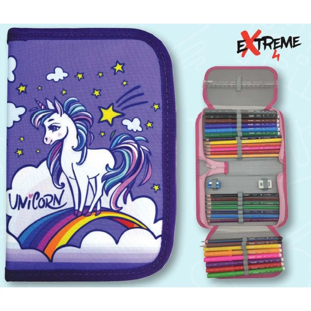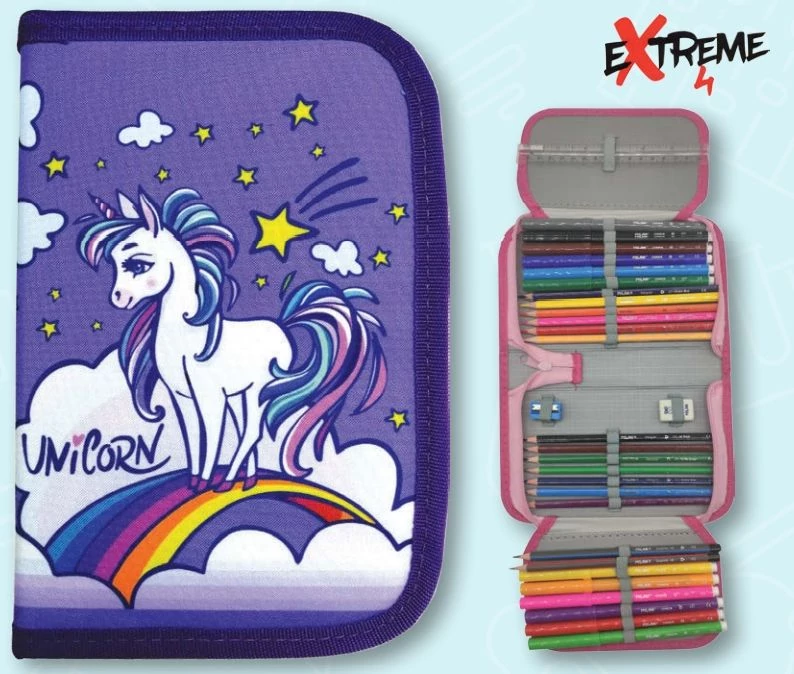 TOLLTARTÓ 2 klapnis EXTREME4ME töltött MILÁN írószerekkel vegyes minta (Unicorn kék, N01E80006)