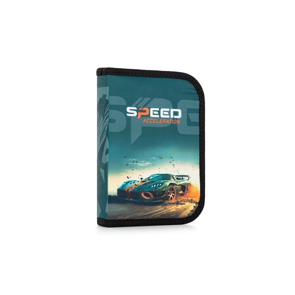 Kialakítása: két kihajtható klapnival rendelkezik, melyen kívül órarend és szorzótábla található. Kialakítása: 7+9+9 gumipánt ceruzáknak, 1-1 szélesebb gumipánt radírnak, hegyezőnek és vonalzónak. Bélése műanyag, így könnyen tisztítható.