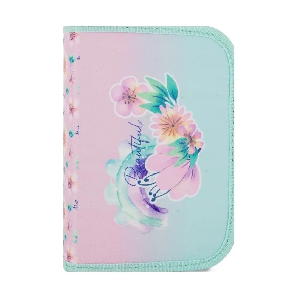 Mintás üres tolltartó 2 kihajtható füllel, melyben kényelmesen elférnek az írószerek. Órarendnek is van hely benne.