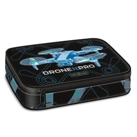 Többszintes, töltetlen, cipzáras tolltartó. Belül textillel bevont merev lapokkal, gumis kialakítással 30 ceruza számára az írószerek tárolásához és egy cipzáras belső zsebbel