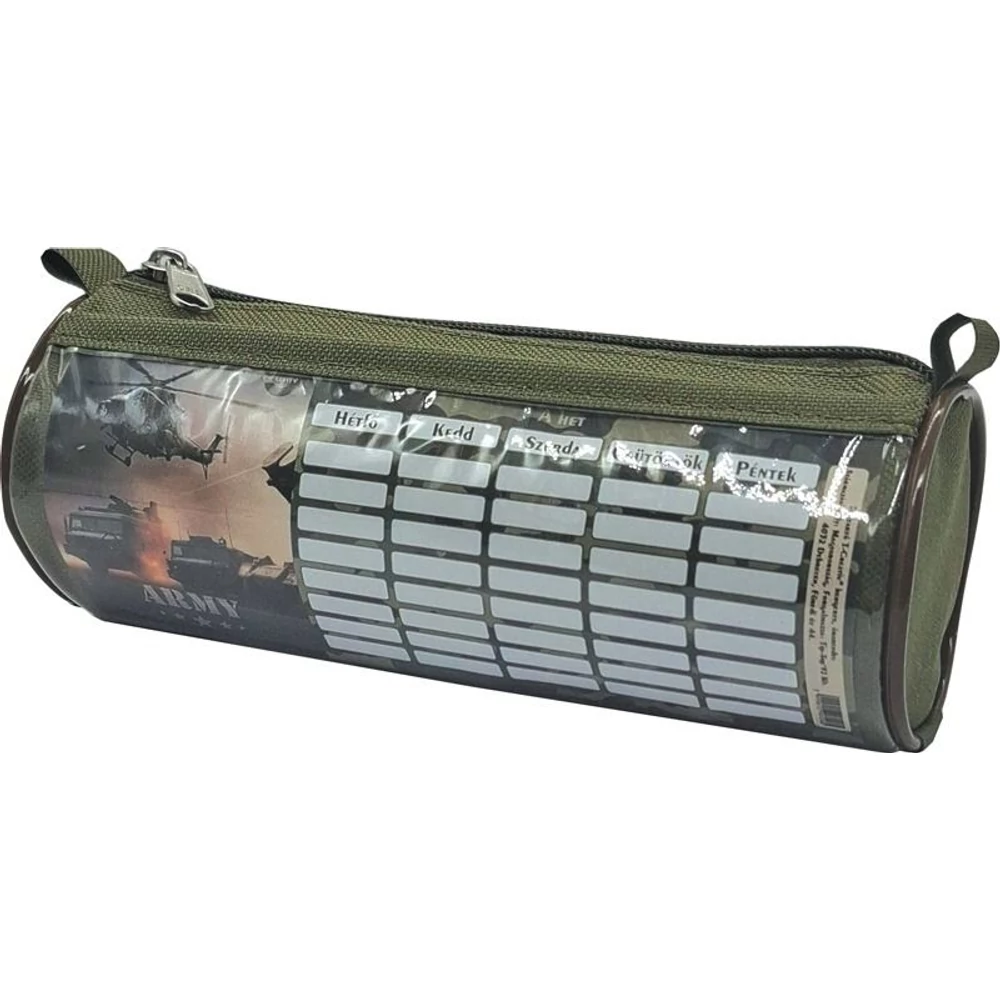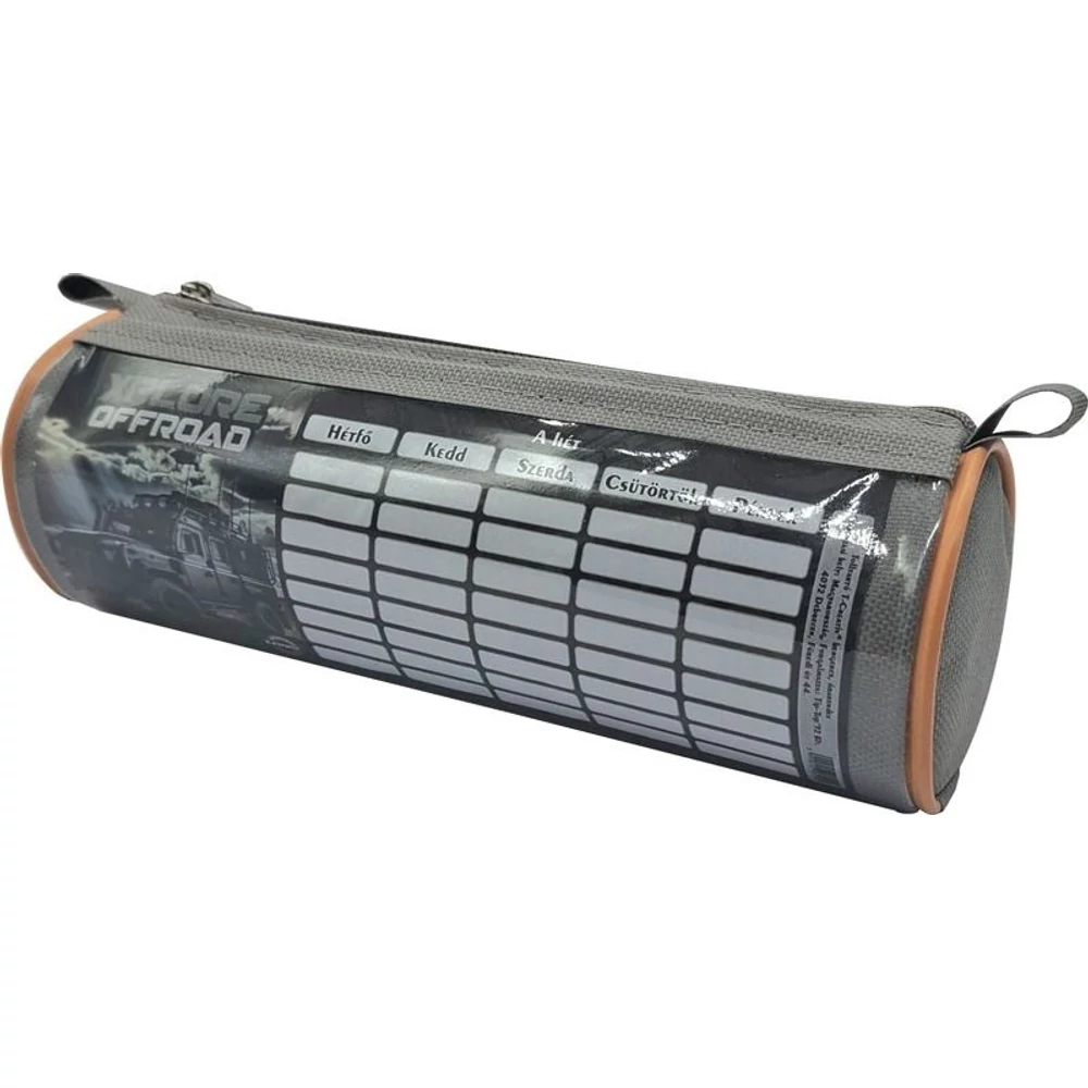 Cipzáros, henger alakú üres tolltartó, 2 oldalas órarenddel.