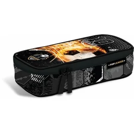 Bedobálós tolltartó, komfort típus. Belül cipzáras zseb és két oldalt fül 10 gumis bújtatóval az írószerek és egyéb kiegészítők , apróságok tárolására. Erős, tartós cipzárral záródik. Tágas, belső térrel rendelkezik. Mérete: 21,5*11*5,5cm.