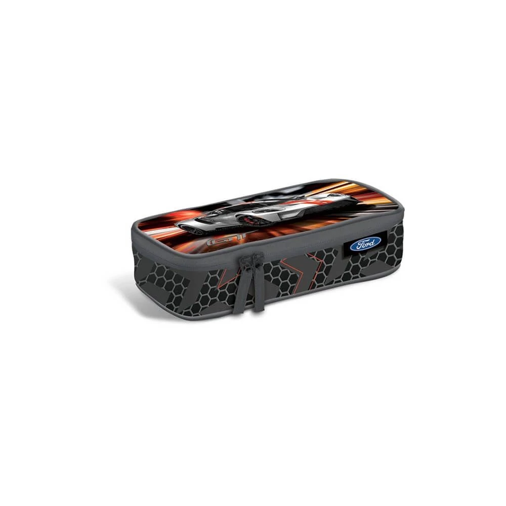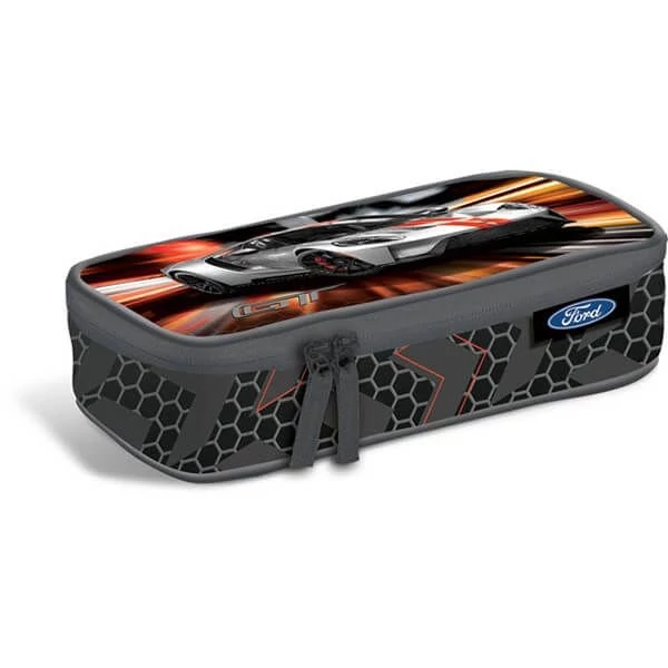 - 2 cipzáras, textillel bevont belső merevítéssel, belső elválasztó gumis kialakítással a ceruzák és egyéb írószerek rögzítéséhez.