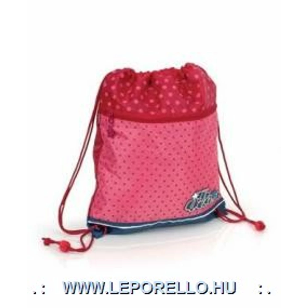MINTÁK: 209614-Queen Méret:33*38cm 208414-Eleven, 211771-Sugar, 211871-Secret ,212672-Enter 212072-Ohlala , 211671-Beautiful - A tornazsák felül madzaggal szűkíthető, elején cipzáras rekesszel, hátulján szellőzővel. Vízhatlan anyagból, torna és úszás felszerelés hordására. Háton és kézben is hordható tornazsák.