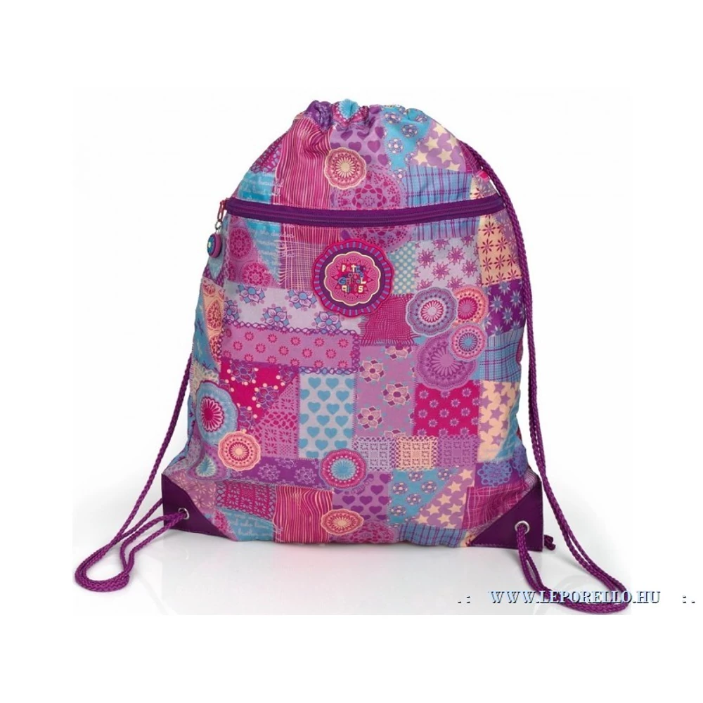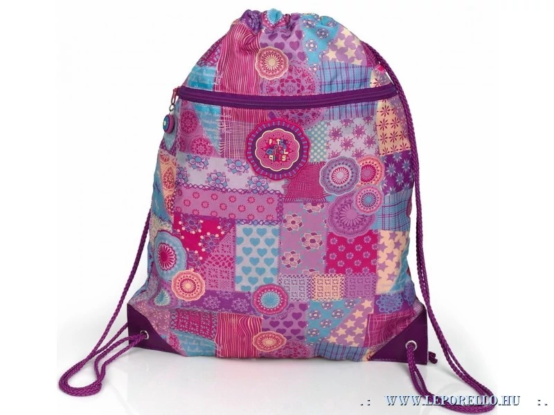 MINTÁK: 209614-Queen Méret:33*38cm 208414-Eleven, 211771-Sugar, 211871-Secret ,212672-Enter 212072-Ohlala , 211671-Beautiful - A tornazsák felül madzaggal szűkíthető, elején cipzáras rekesszel, hátulján szellőzővel. Vízhatlan anyagból, torna és úszás felszerelés hordására. Háton és kézben is hordható tornazsák.