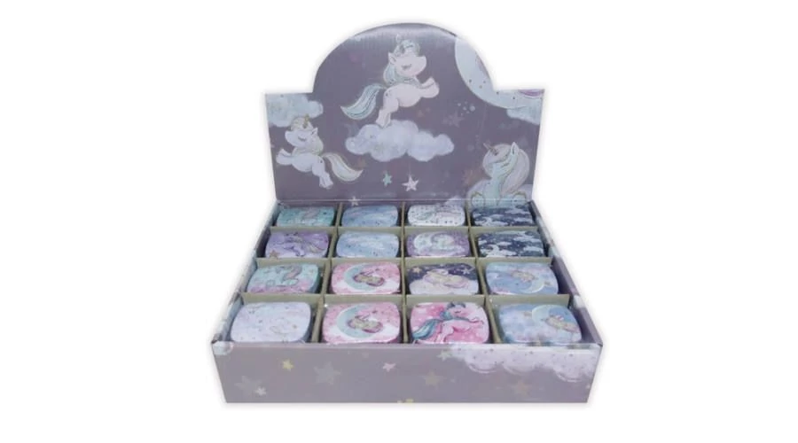 DÍSZDOBOZ fém téglalap lapos 6*4,8*1,9cm unikornis, fényes