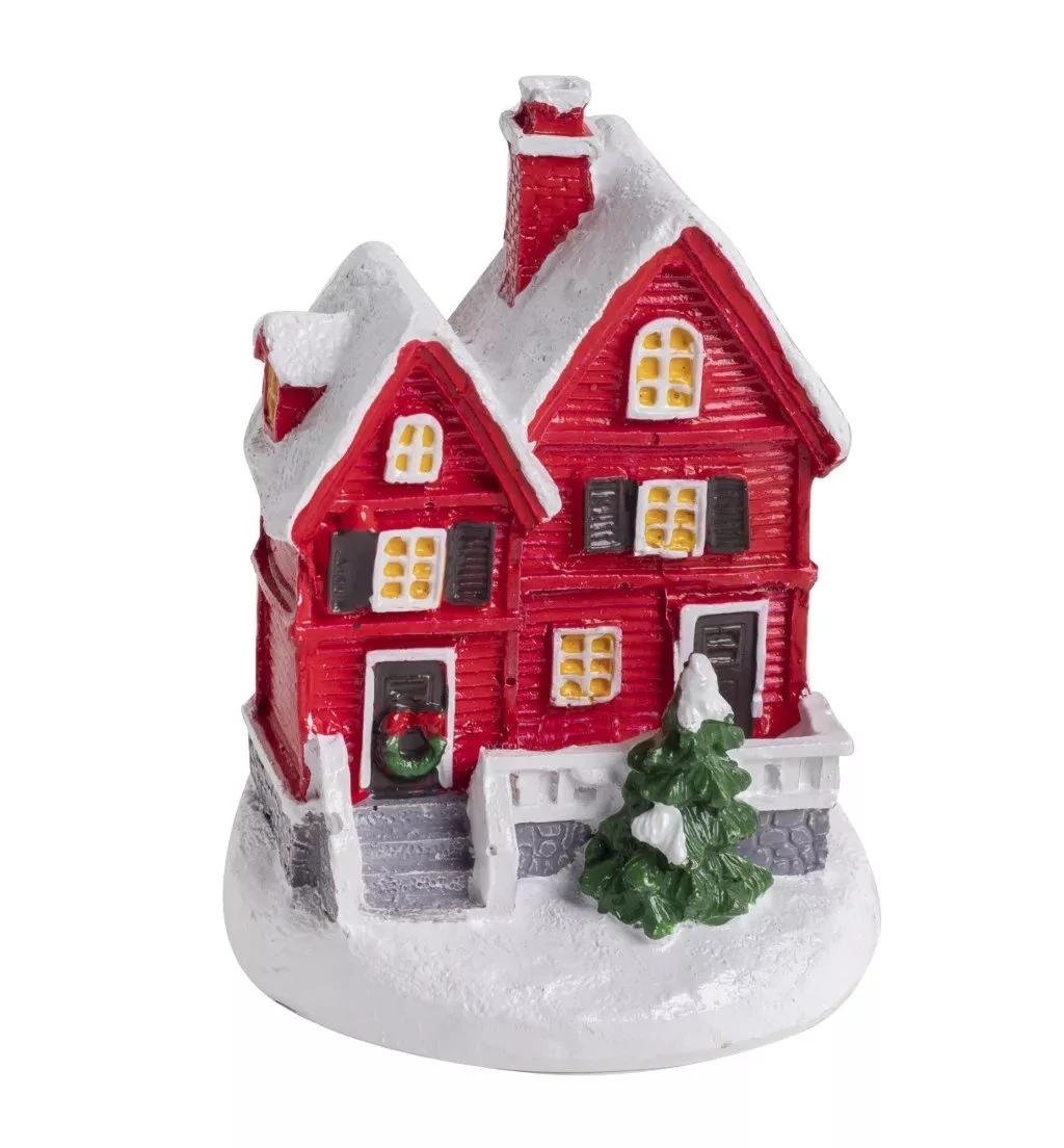 KARÁCSONYI kerámia házikó piros 6,5*9cm