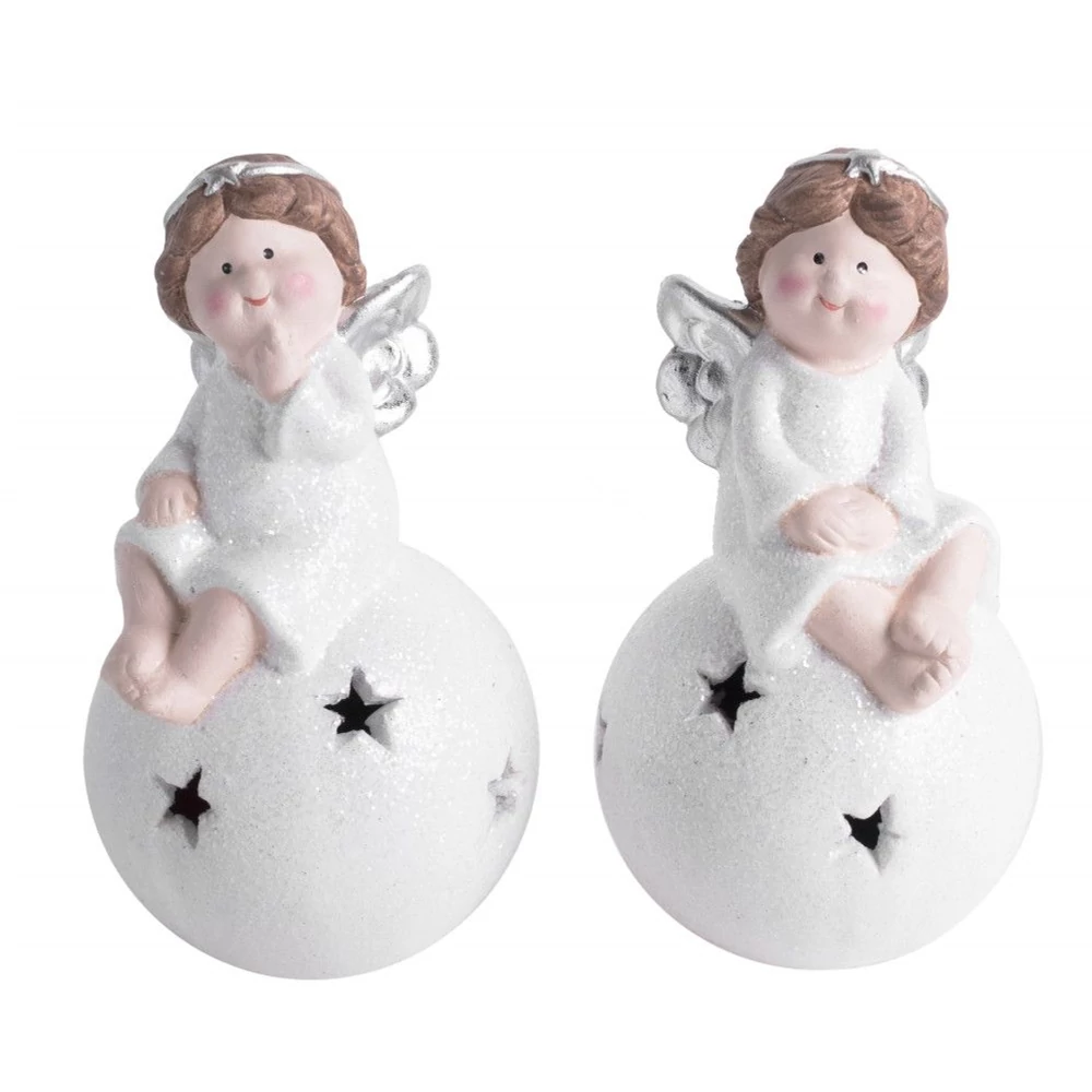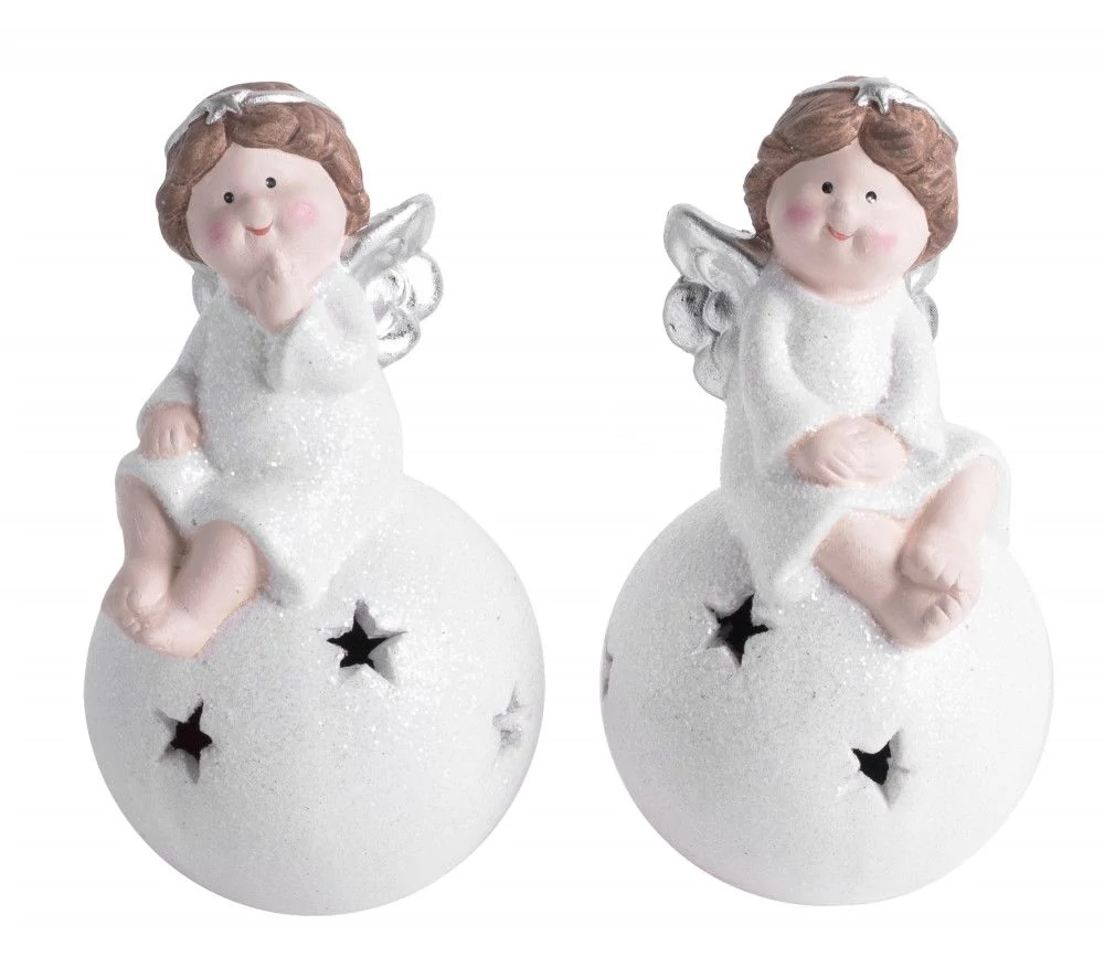 KAR. ANGYAL kerámia, gömbön ülő LED-es